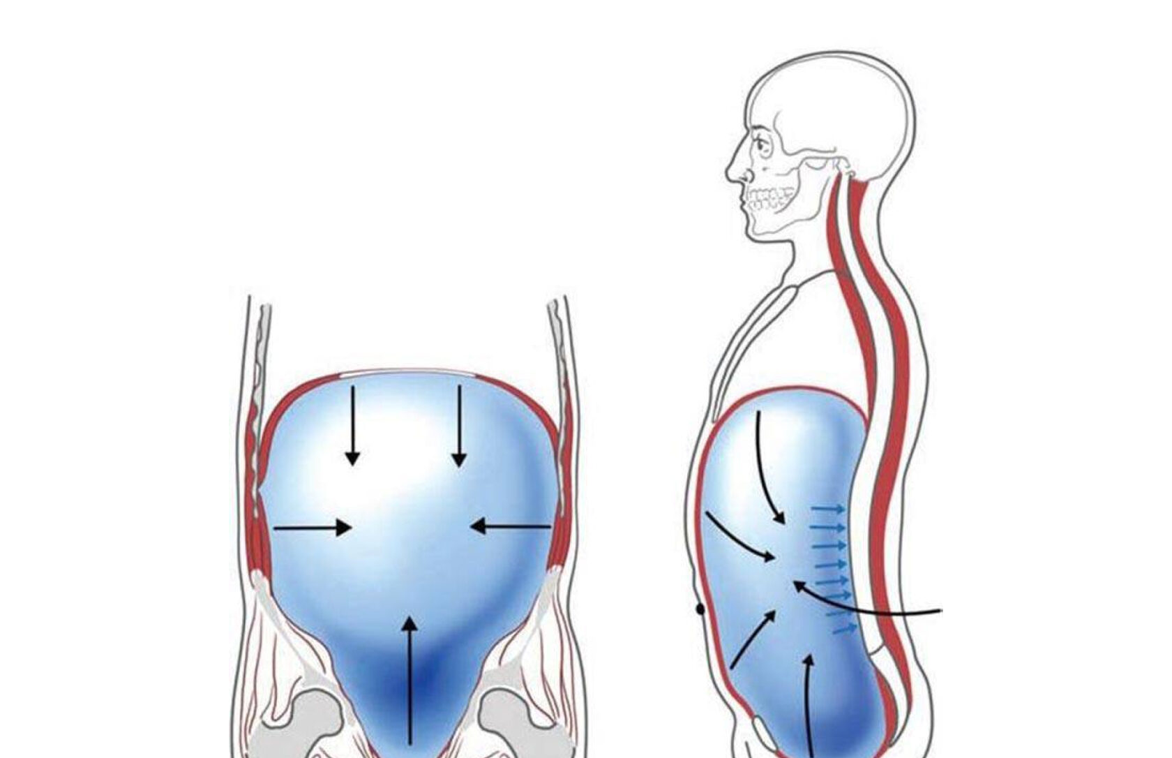 Итак, представили бочку? Крышка — это диафрагма, дно — это мышцы тазового дна.И у бочки, разумеется, должны быть стенки — мышцы кора.Что еще должно быть в бочке? Конечно же, определённый уровень давления — это внутрибрюшное давление.