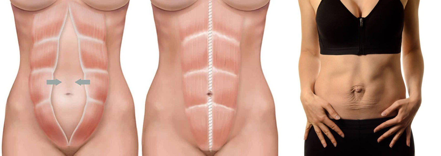 Кстати, диастаз есть не только у рожавших женщин. Он еще формируется от некорректного тренинга — когда вы качаете скручиваниями прямую мышцу живота.