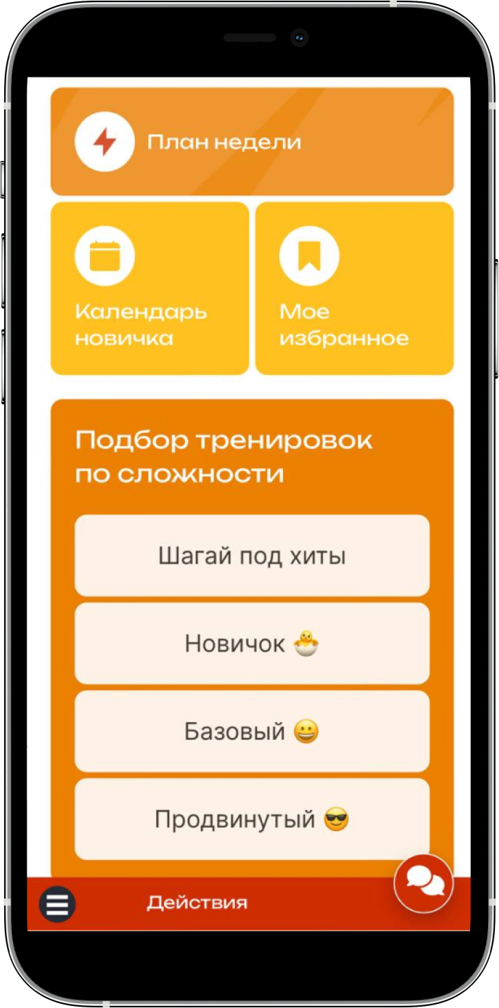 Выбирайте сложность и направление тренировок (классические, танцевальные или силовые) и выполняйте недельный / месячный план для получения желаемого результата.