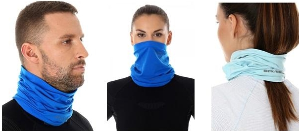 Для защиты шеи лучше всего подойдет компактный бафф. Он согреет воздух вокруг лица, чем снизит риск ожога легких. В особо холодные дни его можно использовать как шапку или балаклаву, а в солнечные – как бандану.
