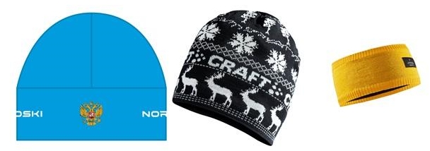 Значительное количество тепла уходит через голову, поэтому без головного убора не обойтись. Но забудьте о толстых шерстяных шапках – в них будет слишком жарко. В солнечные дни или если предстоит интенсивная тренировка, надевайте повязку, прикрывающую уши. Для низких температур подойдет легкая лыжная шапка с анатомической посадкой или более теплая версия на флисовой подкладке.