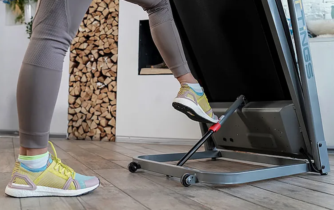 - Если у вас механический вариант тренажера, можете сразу его складывать. Если электрический — сначала отсоедините шнур от розетки.