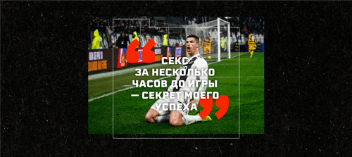 В одном испанском шоу Роналду сказал: «Секс за несколько часов до игры — секрет моего успеха». Но следом добавил, что предпочитает «расслабленный» секс, чтобы сохранить силы.