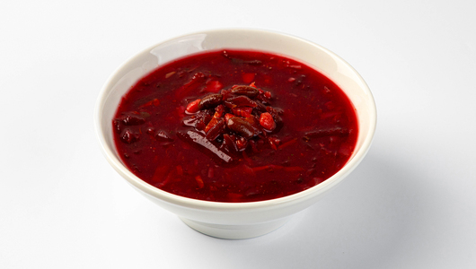 Постный борщ в домашнем стиле с капустой и красной фасолью. Сложный вкус, в котором сладость свёклы гармонирует с томатной кислотностью.