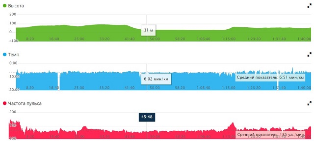 Медленный бег на пульсе 130 уд./мин., калории, средний темп.