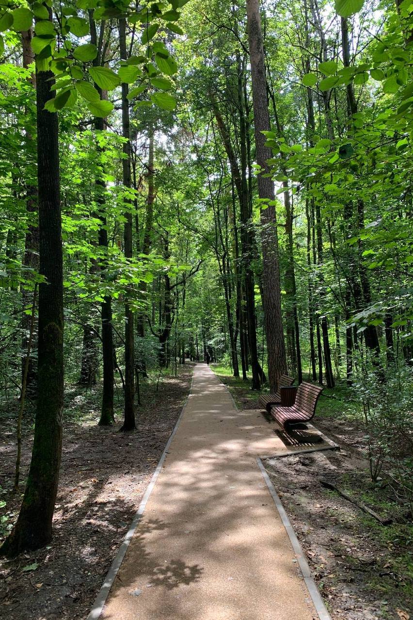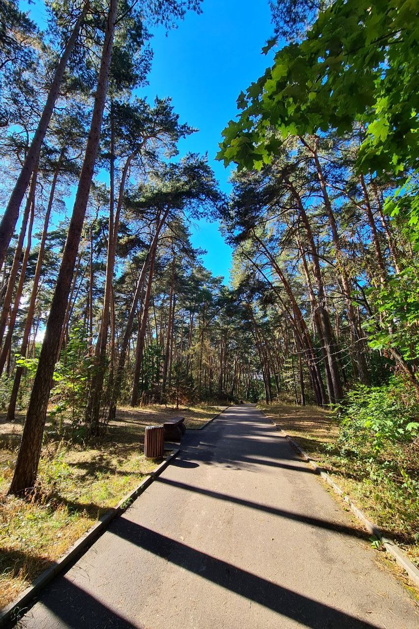 Периметр лесопарка — около 7,5 км. Благодаря разветвлённой сети дорожек и тропинок “набегать” можно и больше. Дорожки грунтовые, но есть и заасфальтированные.