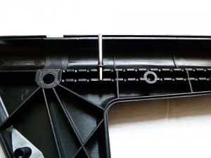 Затем на заднюю трубу надевается пластиковый корпус седла, при этом опорный штифт должен попасть в специальные канавки в корпусе, которых там много и которые расположены с шагом примерно 1 см. Именно благодаря этому мы и имеем возможность регулировать седло по высоте.